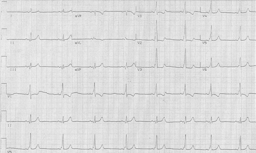 An EKG that was done during a pre-employment health check-up upon patient’s own request two months ago is shown below: