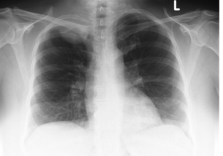 338) A 65 year old man presents to the Emergency Room with complaints of swelling of his face and worsening cough for the past two days. Swelling increases on lying down. He has no significant past medical problems. He smoked about 1 pack per day for the past 45 years and consumes alcohol socially. On examination, his vitals are satble with a blood pressure of 130/80 mm Hg. His face is grossly swollen and the veins over the neck, anterior chest and the face are engorged. There is no stridor. There is no laryngeal edema. Chest is clear to auscultation bilaterally. Cardiovascular examination shows normal s1 and s2 and there is no s3 gallop . A chest X-ray is shown below: